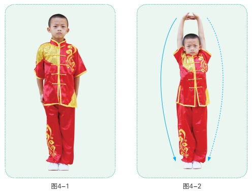 2.两手手指交叉,直臂上举,手心朝上(图4-2)。