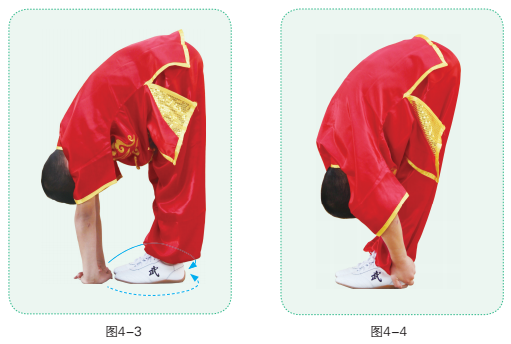 3.上体前俯,并向前向下做压振动作,两手尽量贴地(图4-3 )。