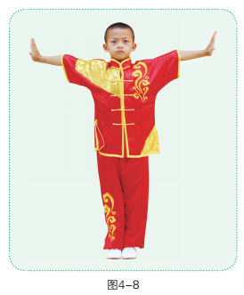 1.并步站立,两手立掌,两臂侧平举(图4-8)。