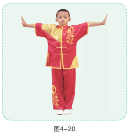 1.并步站立,两手立掌两臂平举(图4-20)。