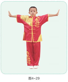 1.并步站立,两手立掌,两臂平举(图4-14)。