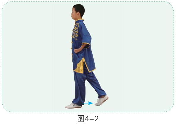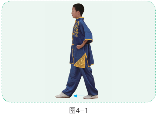 3.落地时,后脚先落,前脚后落。眼看前方(图4-7)。