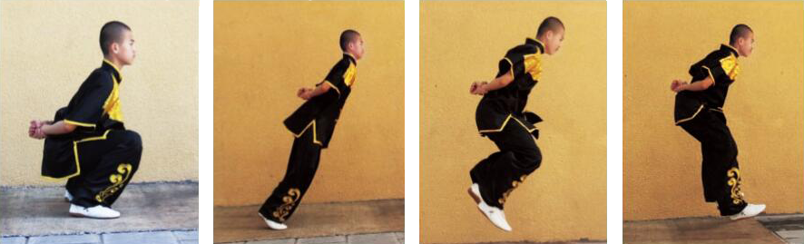 跳步轻灵,马步稳定,双推掌与 马步同时完成。