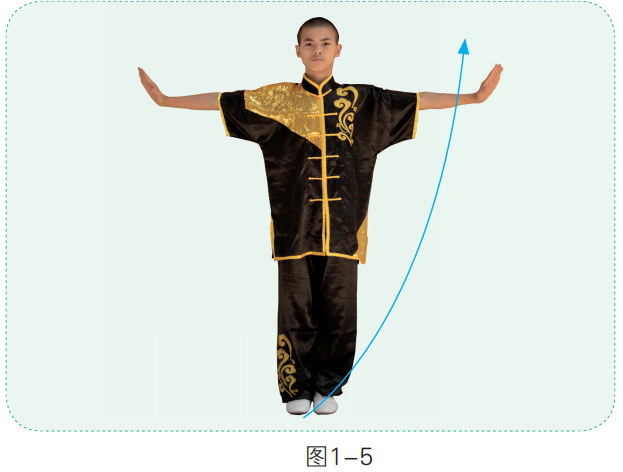 1. 两脚并步站立,两手左右平架,手指朝上,掌心朝外(图1-5)。
