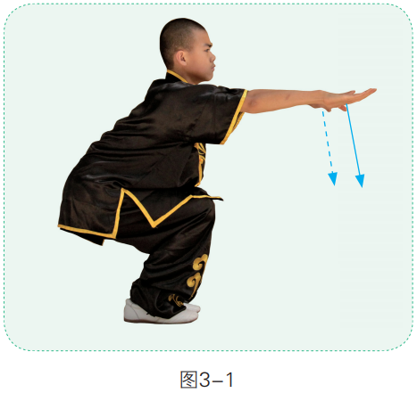 1. 两脚并步半蹲,两手伸于体前(图3-1)。